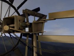 On a walk in East Sussex UK, near Pevensey Castle, we came across this metal wind pump. It pumps water from the ground for the farm animals and to keep the water levels in the fields constant. It’s constructed of simple materials like angle iron. Completely fascinated by not just its mechanics, but by the sound it produced, I made this computer model.